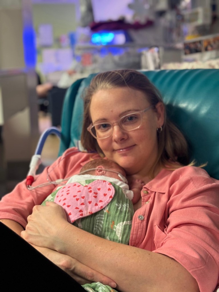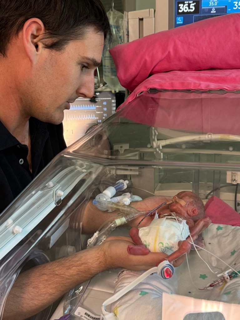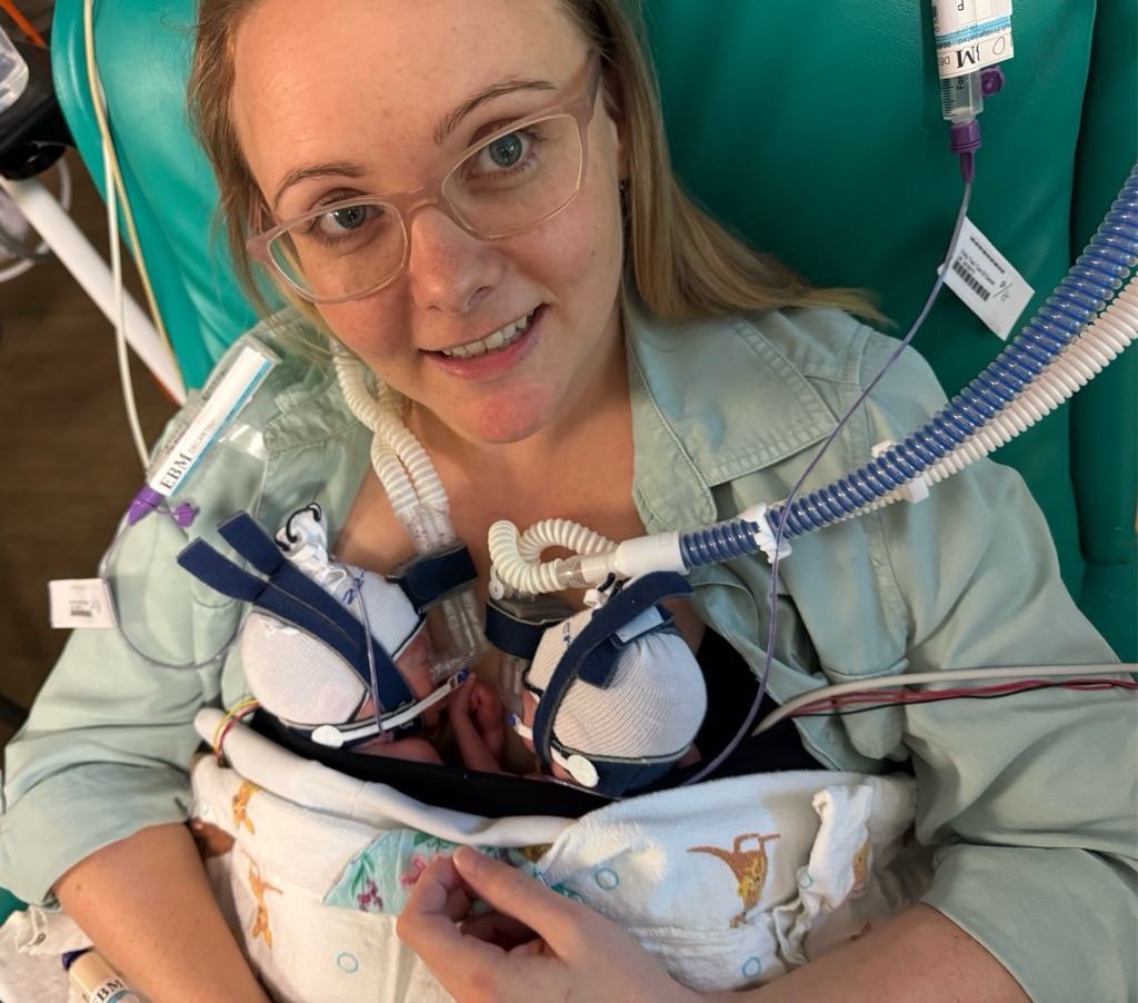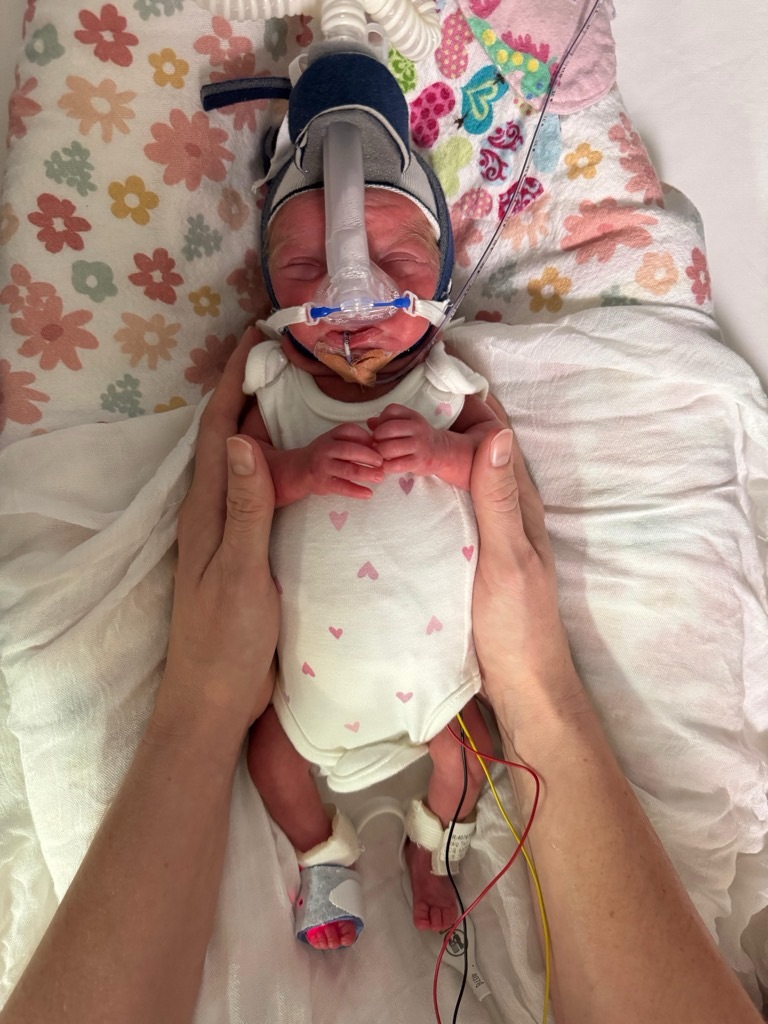 In more good news, they are both out of their humidicribs (Eva first and then Matilda on 1 July) and are now in open cribs and are wearing clothes for the very first time! Eva has also moved off CPAP (continuous positive airflow pressure) and has been transitioned to a nasal cannula, which delivers oxygen through small tubes placed in her nostrils. This means that her Mum and Dad can pick her up without waiting for a nurse to help them which has been a very special change.