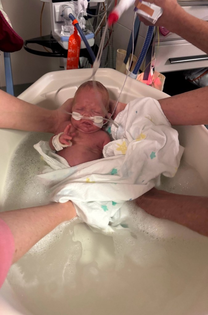 More firsts achieved include Eva having her first bath and starting to learn to breastfeed while Matilda has been learning to suck “milk lollipops” – cotton buds dipped in breast milk.
