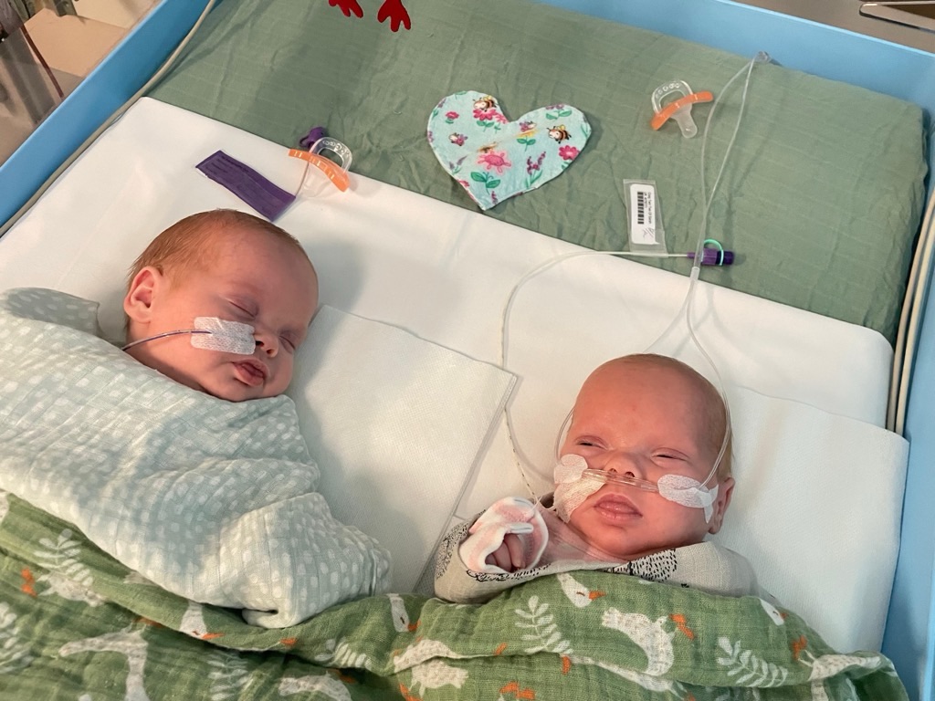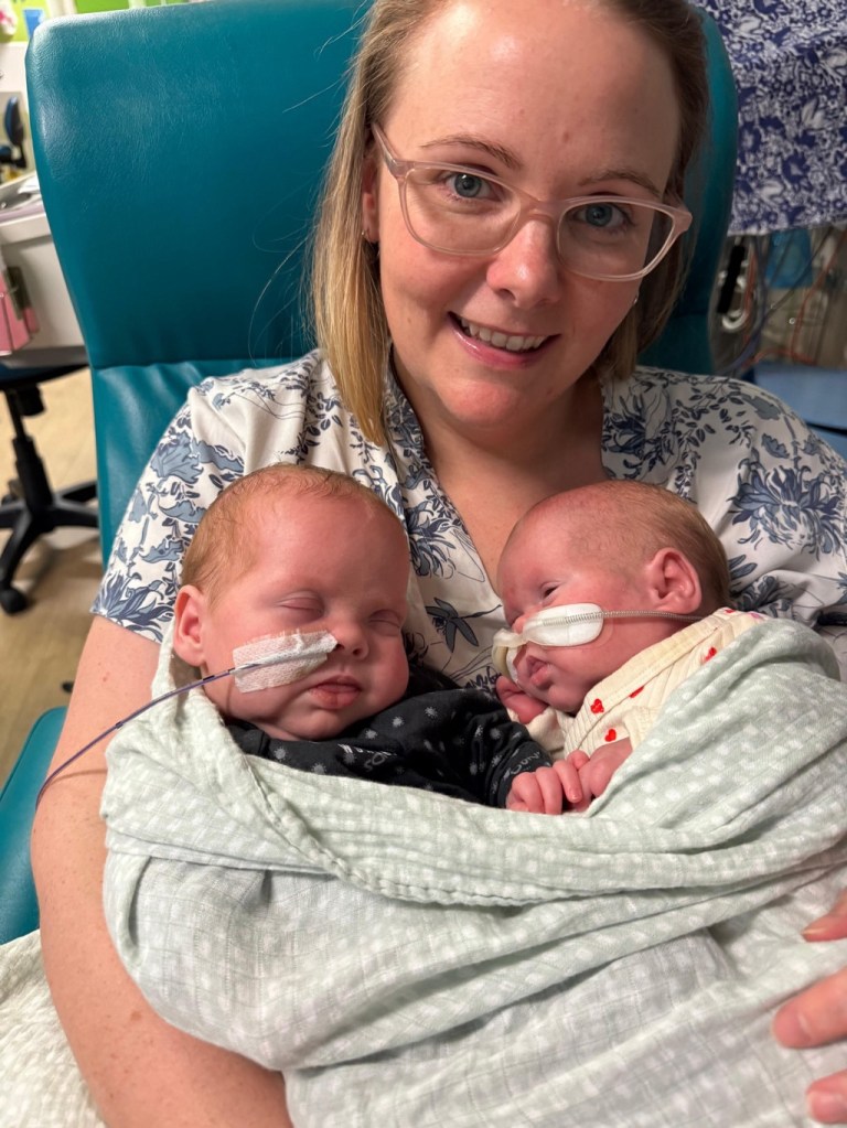 Happily the girls have been making good progress and it was a great moment when the two of them were put together in one cot again when Matilda was put on low flow oxygen and graduated from Intensive Care to Special Care.