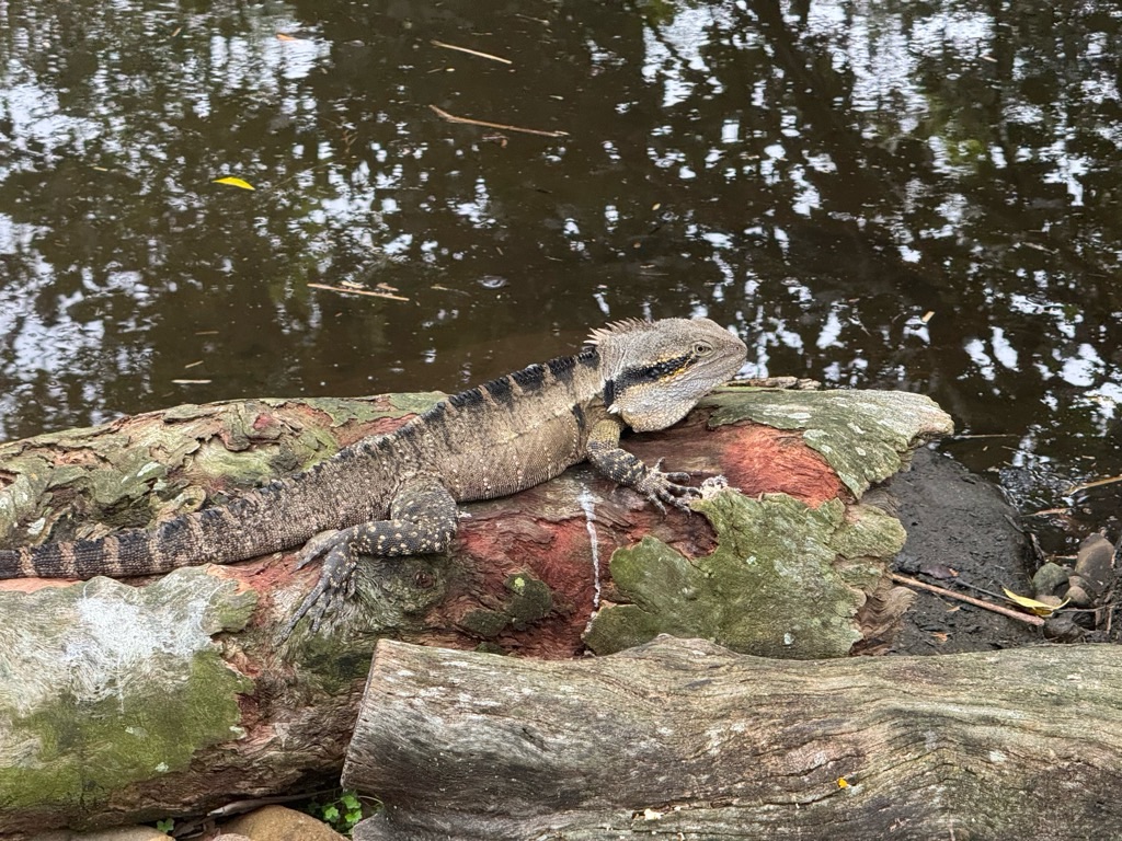 We saw various types of wallabies, grey and red kangaroos, lots of water birds, including black swans, many different species of birds (in the roomy tropical aviary), dingoes, wombats, water dragons and even sweet bilbies in a special nocturnal exhibit.
