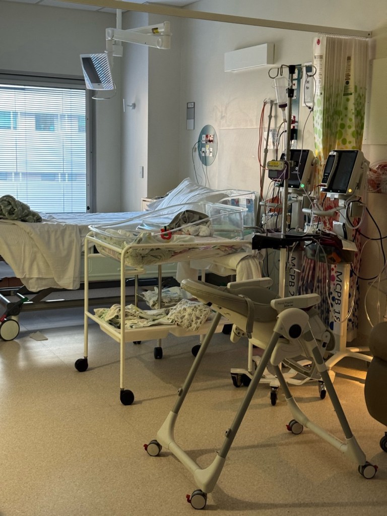 Although it was a great disappointment that Eva was back in hospital, and a nasal feeding tube had been reinserted after some weeks of going without it, it did make it easier for Ben and Sarah. They were able to stay 24 hours a day and could also care for Matilda as there is a connecting corridor from the Children’s Hospital to the NICU.