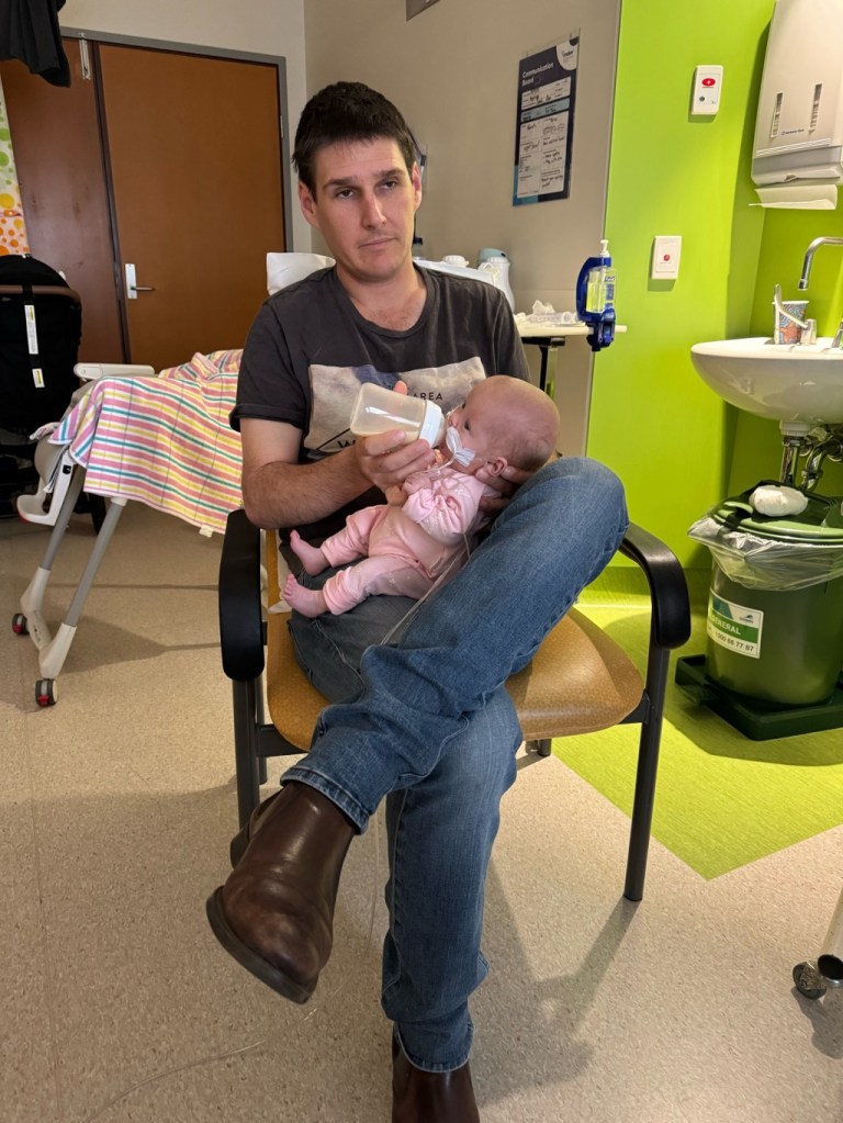 It was a really tough week – although it was fantastic to have Eva at home, she had terrible reflux and wasn’t feeding well. So each alternate day either Ben or Sarah really struggled on their own to try to feed her while the other one drove the hour to the Mater Hospital by themselves to be with Matilda who was having her own digestive problems.