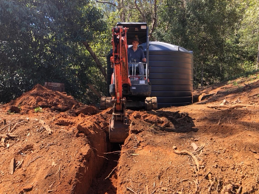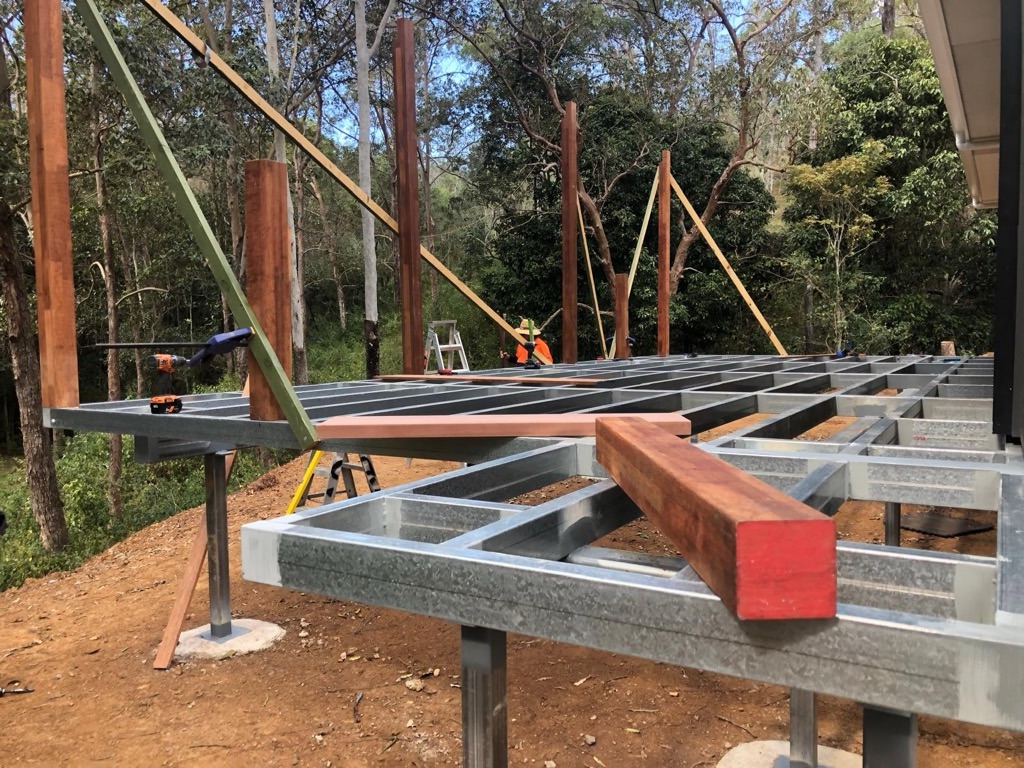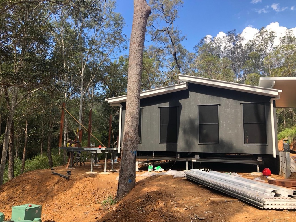 While all this was going on there was at last some real progress with our little bush cottage which had been delivered on site in a quiet corner of Ben and Sarah’s 100-acre property on 30 July.