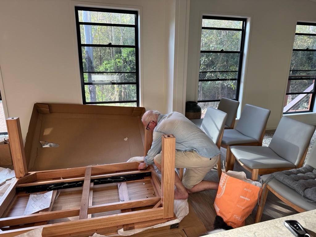 Fortunately, we have a caravan and were able to set it up with water and power next to Ben and Sarah’s “small” shed.   We spent a very comfortable ten days in the van before moving into the house properly.