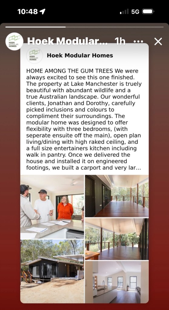 The handover of our “bush cottage” from Hoek Homes was a great milestone and we are very happy with the result!