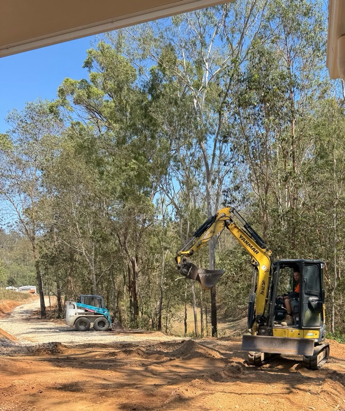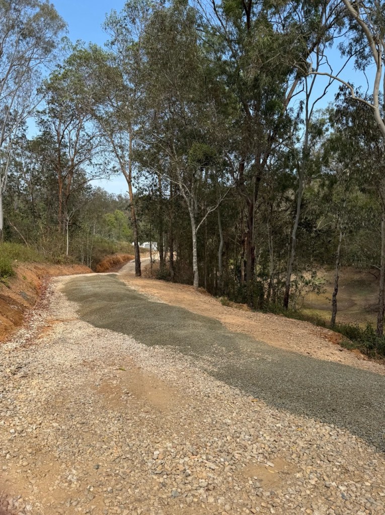 Shortly after moving in, we had many truckloads of road base delivered for our driveway. Then our very good local contractor Chris, came in to spread and level the road base to provide a tidier and smoother road. He also shaped a turning circle next to the house and installed some additional drainage. It looked so much better!
