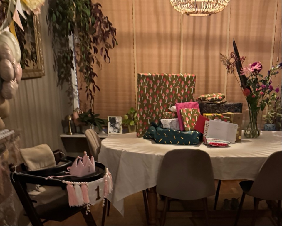 Soon the big first birthday arrived and we had a wonderful time celebrating! On the day itself our granddaughter came downstairs to a beautifully decorated living room and a climbing frame with a giant red bow tied on to it, as well as lots of other wonderful gifts.