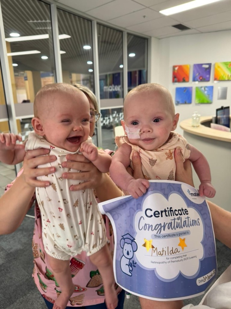 The littlest one – Matilda – had been discharged from her regular invasive eye examinations and pronounced clear of Retinopathy of Prematurity (ROP). This condition can cause blindness so we were of course very relieved when she “graduated“ from the screening program.