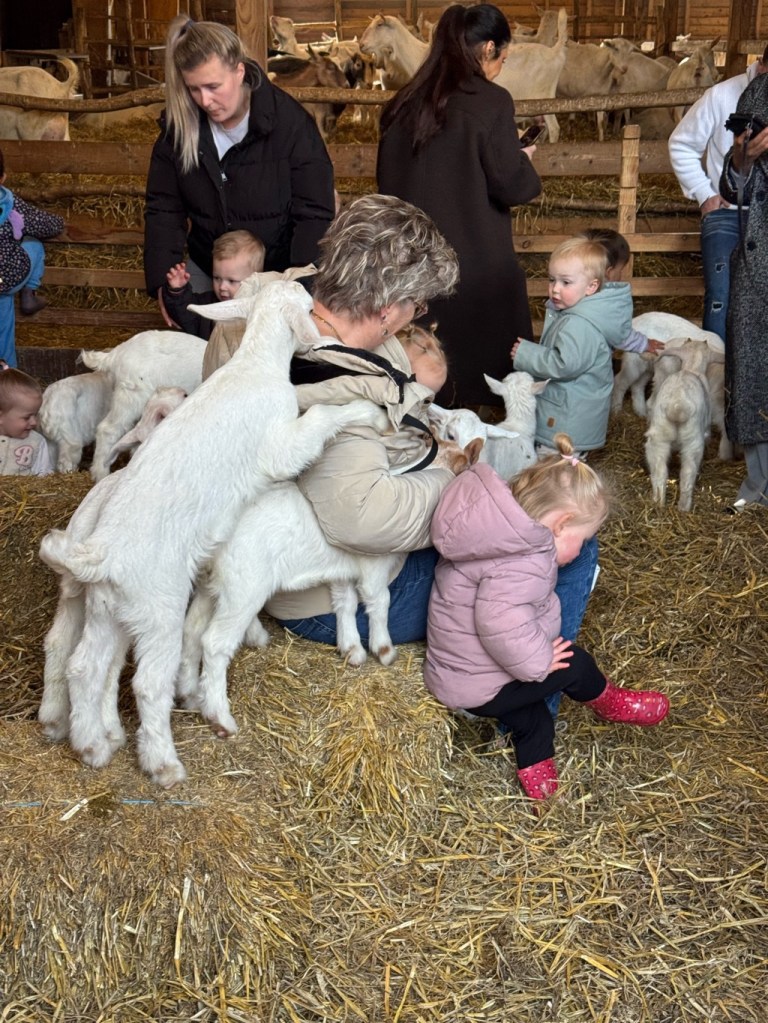 There was an area where visitors could mix with the goats – this lady was inundated by grandchildren and young goats