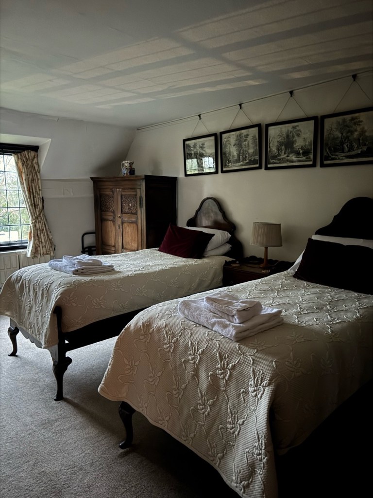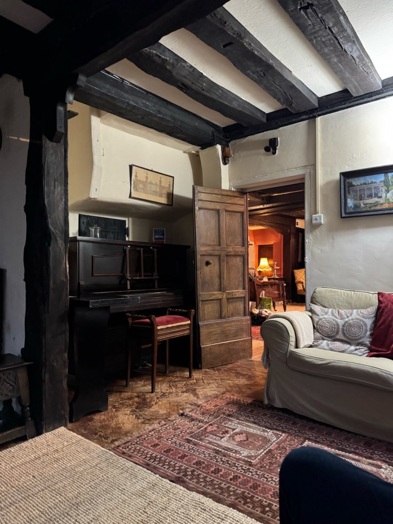 We arrived safely in the late afternoon at gorgeous Peke’s Manor, a fifteenth century Grade lll listed house with oak beam ceilings and panelled rooms.